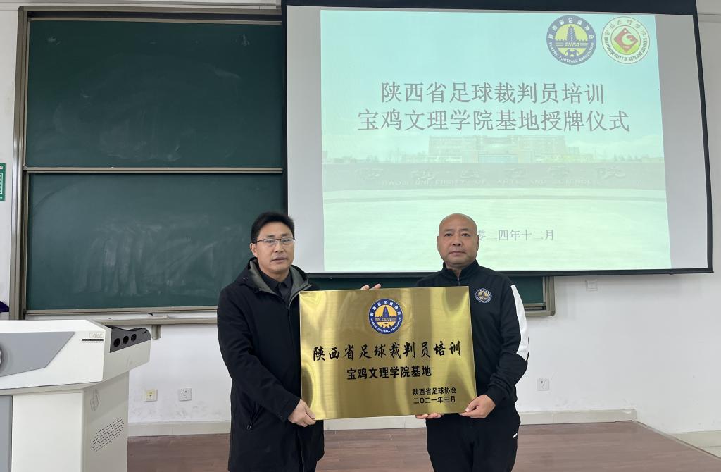 12月8日,陕西省足球运动管理中心、陕西省足球协会授予beat365官网体育学院“陕西省足球裁判员培训基地”仪式在高新校区博文楼203举行。陕西省足球协会裁委会委员、裁判员讲师何增辉,体育学院院长于奎龙参加仪式。