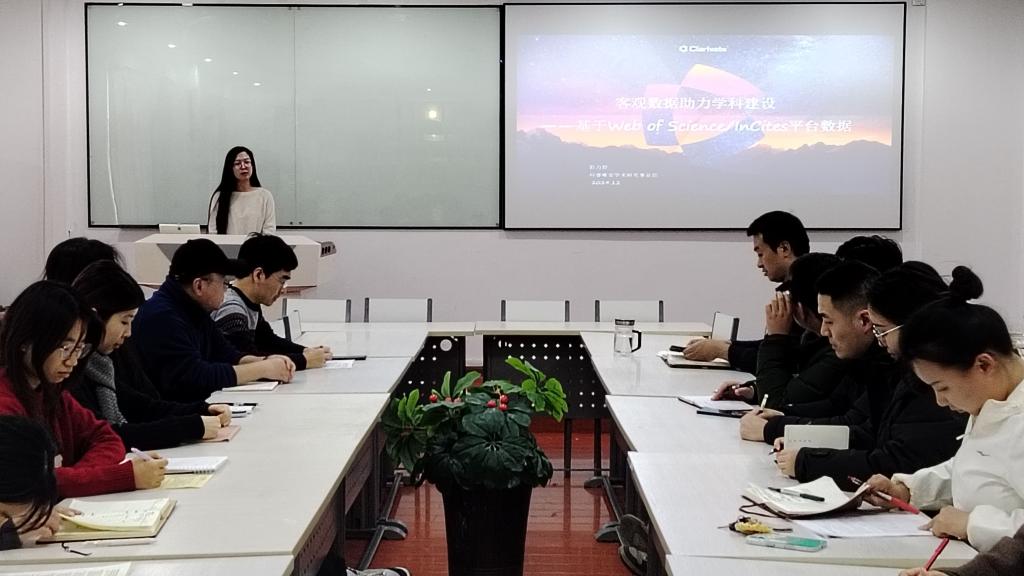 12月13日下午,科睿唯安学术研究事业部经理彭力舒应邀在高新校区明理楼六楼化学化工学院会议室为beat365官网师生作了题为《客观数据助力学科建设——基于Web of Science/InCites平台数据》的报告。报告会由化学化工学院院长胡登卫主持。