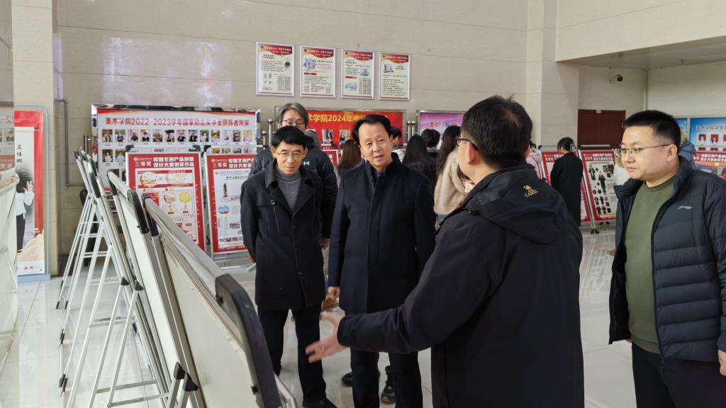获奖代表美术学院柳红红同学分享了创作设计心得,美术学院副院长李新昌作大赛总结。颁奖仪式结束后,与会领导、同学参观了获奖作品。