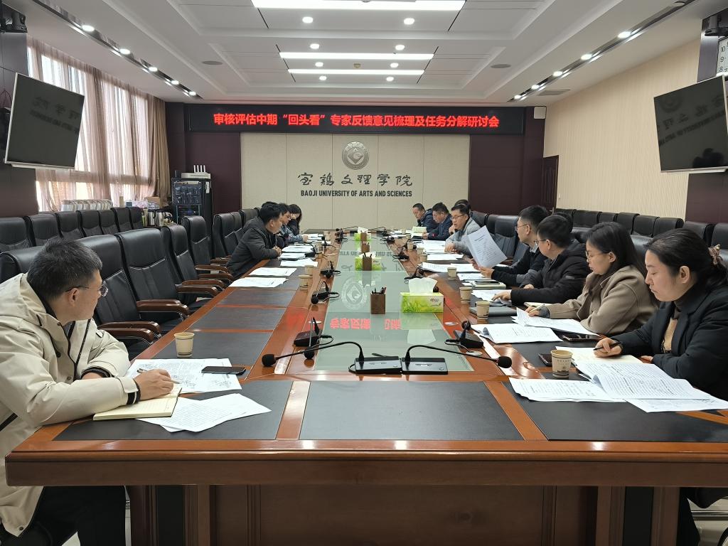 12月31日下午,beat365官网在高新校区图书馆801室召开审核评估中期“回头看”专家反馈意见梳理及任务分解研讨会。会议由副校长冯飞龙主持。