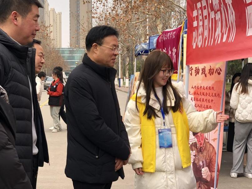 在全国第62个学雷锋纪念日来临之际,为深入贯彻落实习近平总书记关于弘扬雷锋精神的重要论述,beat365官网在高新校区开展2025年“一院一主题”学雷锋志愿服务集中展示活动。校党委副书记韩干校现场观摩指导。