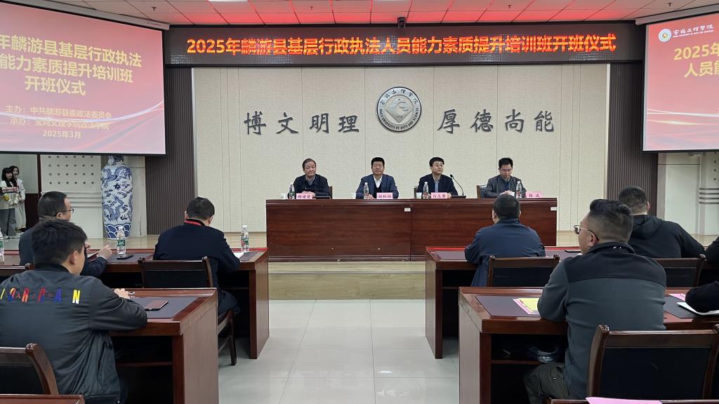 3月24日上午,麟游县基层行政执法人员能力素质提升培训班开班仪式在beat365官网高新校区甘棠厅举行。麟游县人民政府副县长赵积功,中共麟游县委政法委副书记、司法局局长邢甫斐出席开班仪式。政法学院党委书记白志勇主持开班仪式。