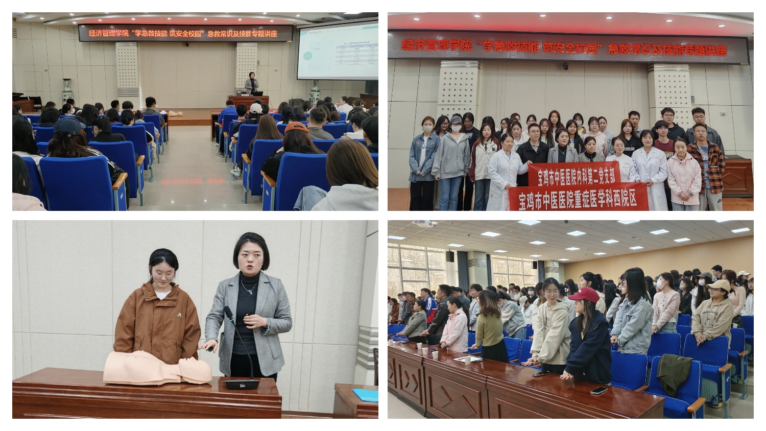 3月26日下午,经济管理学院一站式社区邀请宝鸡市中医医院重症医学科主任李卫华在高新校区木铎厅作了题为《校园急救常识及技能》的专题讲座。学院全体辅导员、经管e站功能性党支部全体党员、宿舍舍长等200余名师生聆听了讲座。学院党委副书记、副院长薄会颖主持讲座。