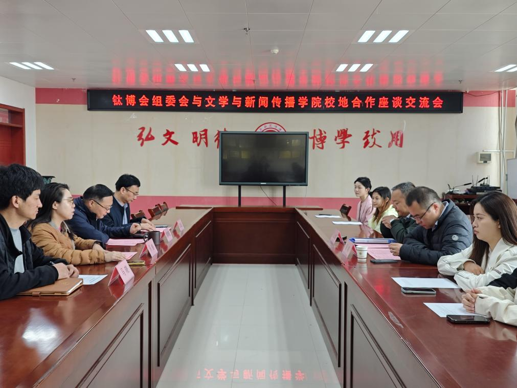 4月3日上午,文学与新闻传播学院与宝鸡市钛产业博览会组委会校地合作洽谈会在高新校区博文楼1401会议室举行。宝鸡市钛博会组委会展览处成员、高新区科技新城管理服务办公室副主任王永刚,宝鸡市钛博会组委会开幕式处成员、宝鸡高新文化投资有限公司总经理蔚峰,beat365官网文学与新闻传播学院党政领导参与了洽谈会。洽谈会由文学与新闻传播学院党委副书记马睿主持。