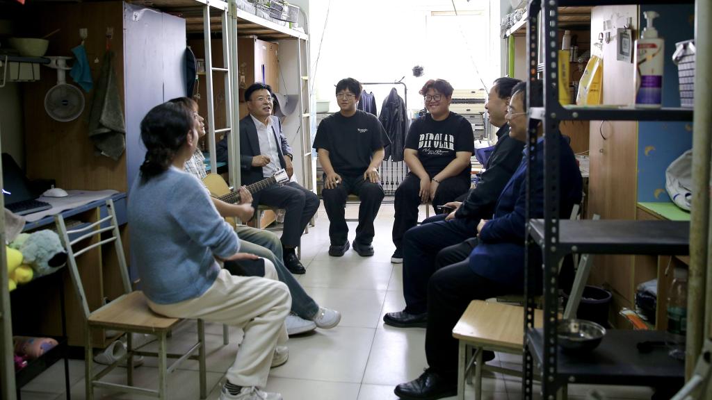 韩干校一行走进学生宿舍,与音乐学院维吾尔族、藏族、苗族等民族学生、毕业生代表进行座谈交流。学生代表们展示了专业技能,分享了在校学习生活感受,并就社区文化建设、民族特色活动开展等工作提出建议。韩干校认真聆听,对同学们积极融入校园生活、促进校园文化发展的实践表示赞扬,并对毕业生的就业情况进行了详细了解。他鼓励同学们一要珍惜时光,在最需要奋斗、拼搏的年纪,不躺平、不摆烂,不因虚度光阴而懊悔;二要坚持到底,选择适合自身的发展方向,持之以恒、锲而不舍地努力,必将有所收获;三要讲求效率,不论是在学习还是日常生活中,学会举一反三,勤思考、多反思,提升学习、工作效率。他勉励毕业生努力提升自身综合能力,积极寻求就业机会,在日后的工作岗位中发光发热。