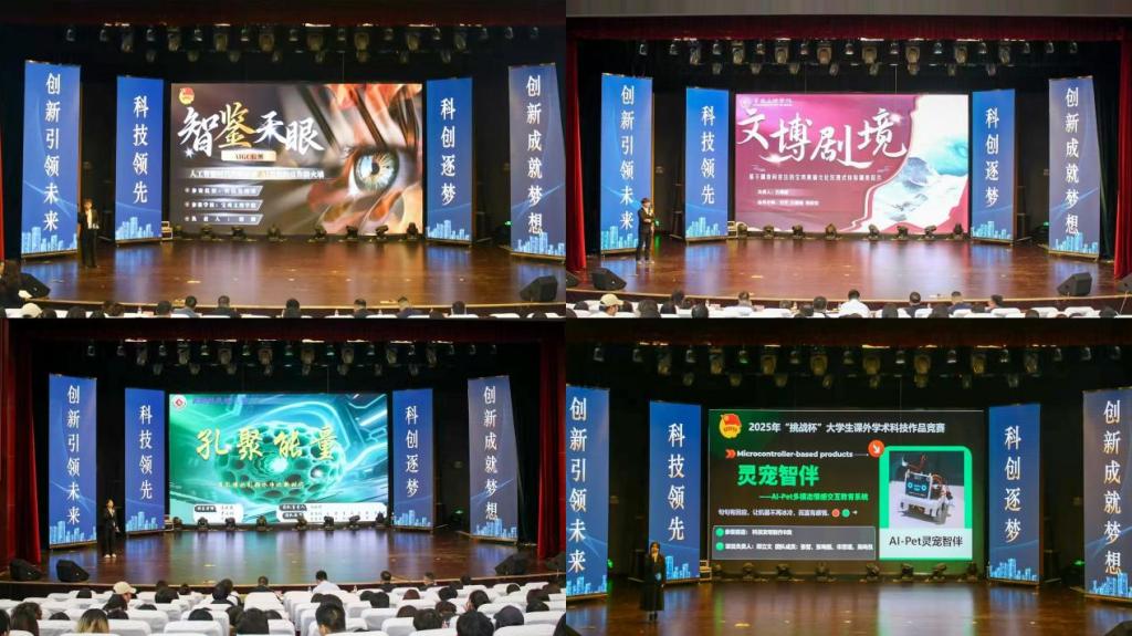 经过激烈角逐,《智鉴天眼—多模态异常感知AIGC检测一体化系统》等2项作品脱颖而出获一等奖,《周原琴音:七弦古琴的千古回响与数字新生》等5项作品获二等奖,《水陆智巡》等7项作品获三等奖,《基于智能压力传感器及深度学习的油井智慧监测诊断系统》等16项作品获优秀奖。计算机学院、机械工程学院、电子电气工程学院、物理与光电技术学院、历史文化与旅游学院团委获优秀组织单位,与会领导为获奖团队与单位颁发了奖牌和荣誉证书。