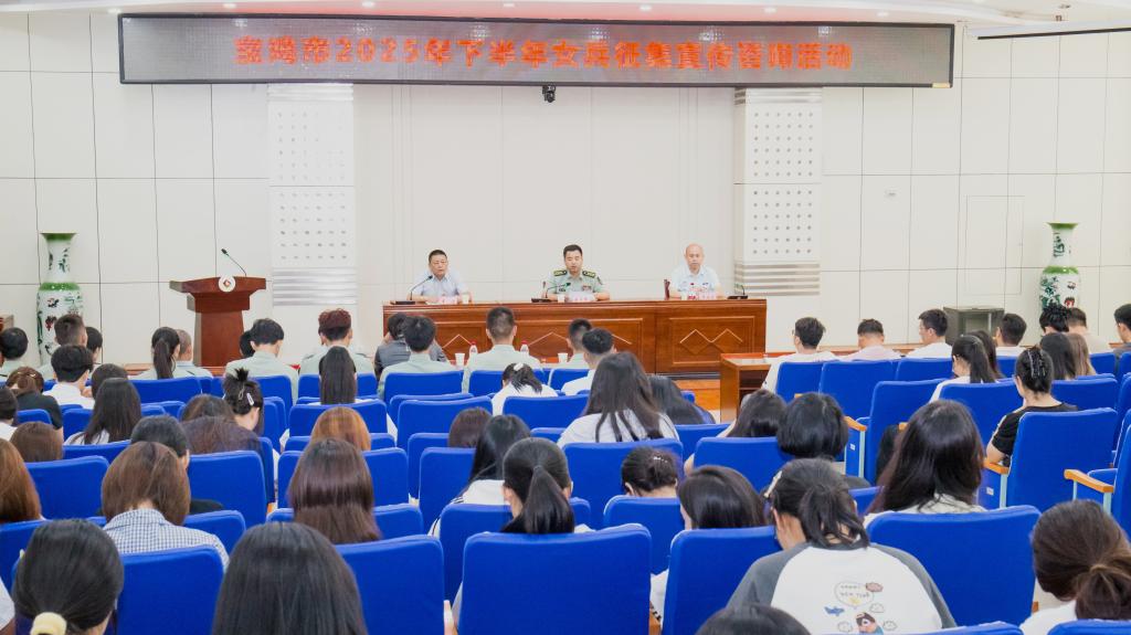 6月18日下午,宝鸡市2025年下半年女兵征集宣传咨询活动在beat365官网高新校区木铎厅举行。宝鸡市征兵办公室副主任魏海峰参加活动并讲话。