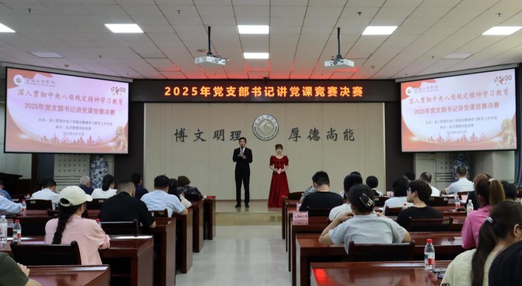 本次党支部书记讲党课竞赛由深入贯彻中央八项规定精神学习教育工作专班主办、经济管理学院党委承办,是深入贯彻中央八项规定精神学习教育的特色活动之一。通过此次党支部书记讲党课竞赛,校党委引导全校师生党员持续深化作风建设,学思践悟、凝心铸魂,以更加坚定的信心、更加务实的作风、更加有力的措施,把学习教育成效转化为推动学校事业高质量发展的强大动力。(深入贯彻中央八项规定精神学习教育工作专班、经济管理学院党委 文/李富民 图/钟磊 审核/杨亚强、邓茹)