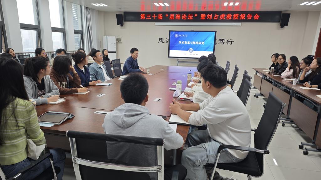 9月18日上午,马克思主义学院在高新校区博文楼1201会议室举办第三十场“星海论坛”学术报告会,邀请西安交通大学博士生导师刘占虎教授为beat365官网师生作题为《学术积累与规范研究》的学术报告。报告会由马克思主义学院院长刘晓勇主持。
