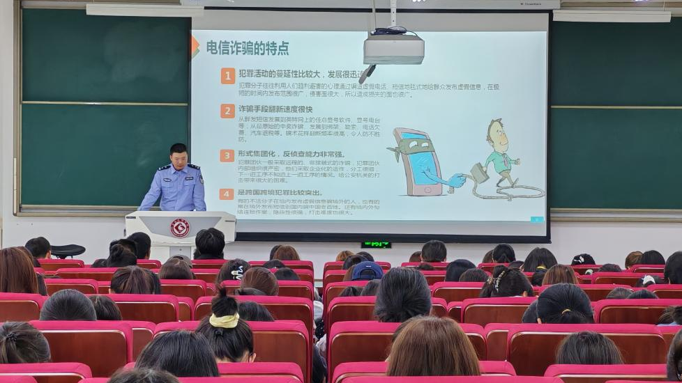 9月21日下午,文学与新闻传播学院邀请宝鸡高新公安分局一级警长段振伟在高新校区博文楼附楼105教室举行防范电信诈骗专题讲座。讲座由学院党委副书记马睿主持。