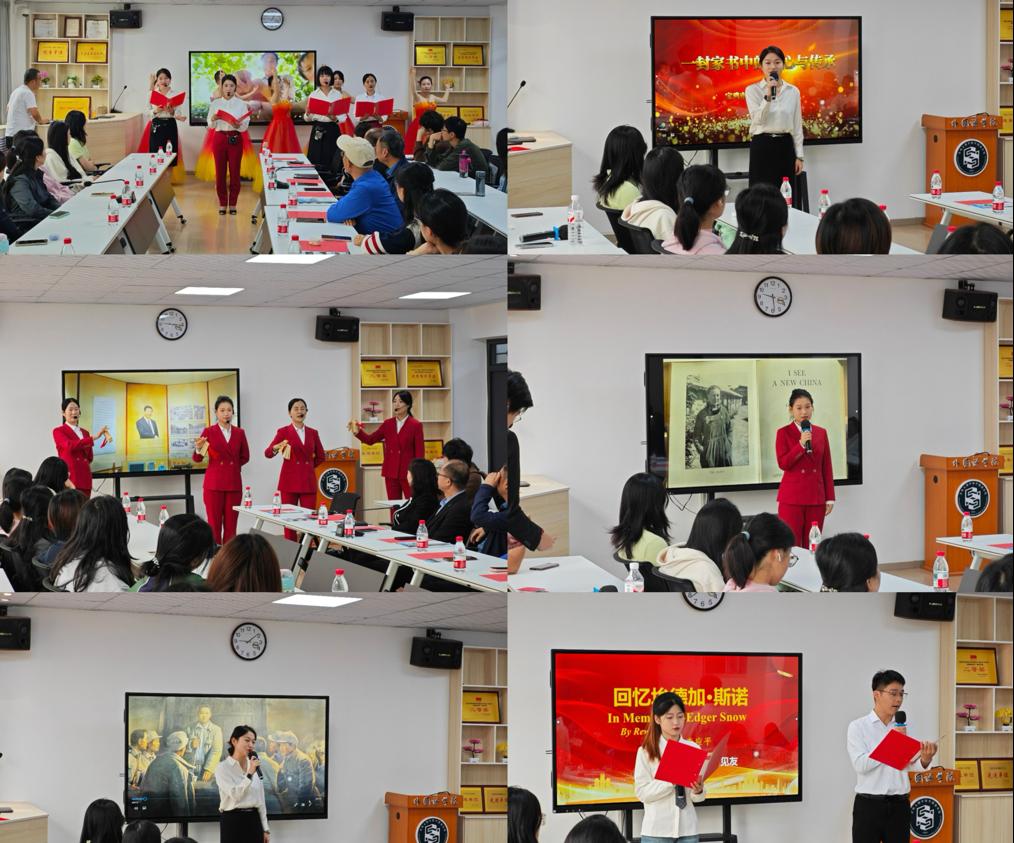 凤县革命纪念馆红色教育志愿服务队通过影像图片、文史资料解读、红色故事宣讲、红色歌舞表演等多种形式,带领师生领略凤县红色底蕴与发展风貌,直观感受革命先辈的峥嵘岁月,同时用鲜活故事传递共产党人初心使命与中国发展力量,为师生缅怀革命先烈、接受红色爱国主义教育搭建了生动课堂。外国语学院学生用中英双语诗朗诵的形式回溯历史瞬间,抒发了对国际友人的深切缅怀,以及对特定历史节点所承载的时代记忆的敬意。
