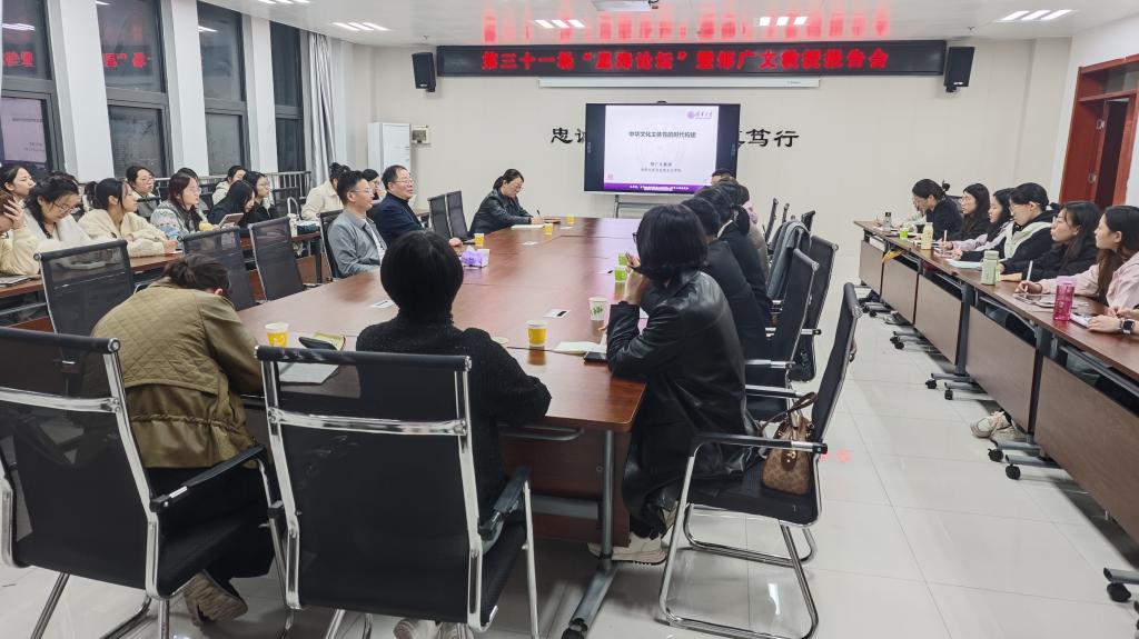 10月19日,马克思主义学院邀请中宣部文化名家暨“四个一批”人才、中国马克思主义哲学史学会文化哲学研究会副会长、清华大学博士生导师邹广文教授为师生作题为《中华文化主体性的时代构建》的学术报告。报告会在高新校区博文楼1201会议室举办,副院长张丽主持报告会。