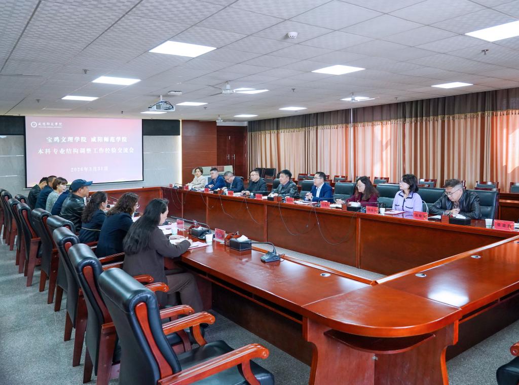 3月31日下午,副校长冯飞龙带队前往咸阳师范学院开展本科专业调整专题调研交流。座谈会由咸阳师范学院副校长姚波主持。