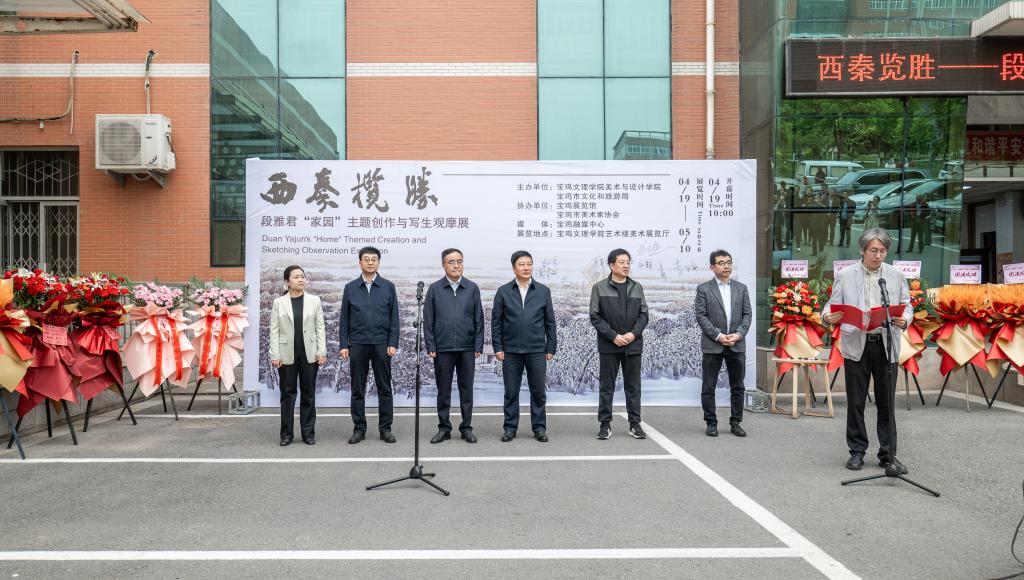 4月19日上午,西秦览胜——段雅君“家园”主题创作与写生观摩展在高新校区艺术楼美术展厅开幕。副校长冯飞龙出席开幕式并宣布展览开幕,美术与设计学院副院长李新昌主持开幕式。
