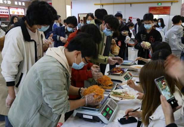 经过激烈比拼,体育学院时景涛同学制作的菜夹馍以1070克的重量斩获冠军,机械工程学院洪峻哲、姜夏同学分别以990克、960克的成绩获得亚军和季军。