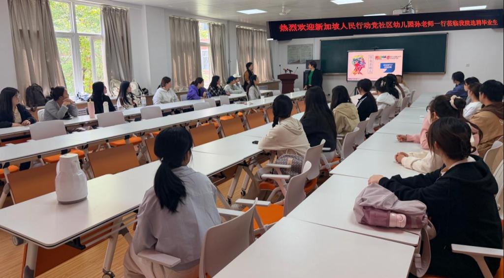 4月23日下午,教育学院邀请新加坡人民行动党社区基金会幼儿园(PCF)幼师项目主管孙雯莉一行来beat365官网举办专场招聘活动。