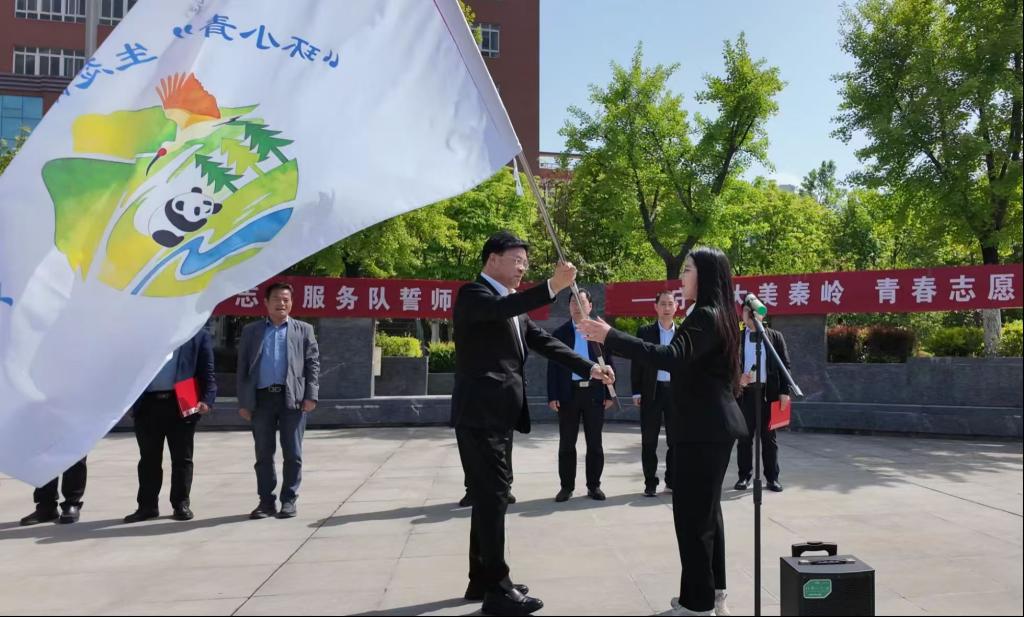 4月23日下午,学校在高新校区励志广场举行“环小青”生态保护志愿服务队授旗仪式誓师大会。校党委副书记韩干校出席仪式并为志愿服务队授旗,宝鸡市秦岭生态环境保护中心主任职亮到会并致辞。