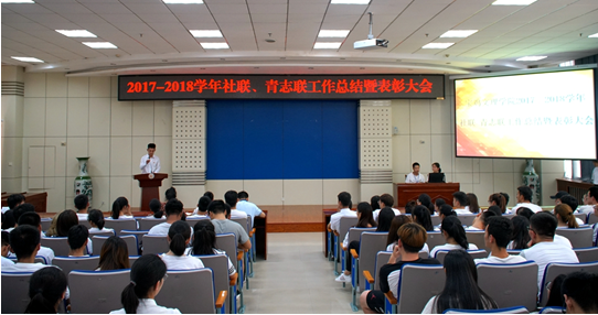 6月20日,校团委在新校区召开2017-2018学年度社联、青志联工作总结暨表彰大会。校团委书记党建波,副书记马睿、赵昕,各社团代表、青志联代表、志愿者代表共200余人参加了当天的活动。