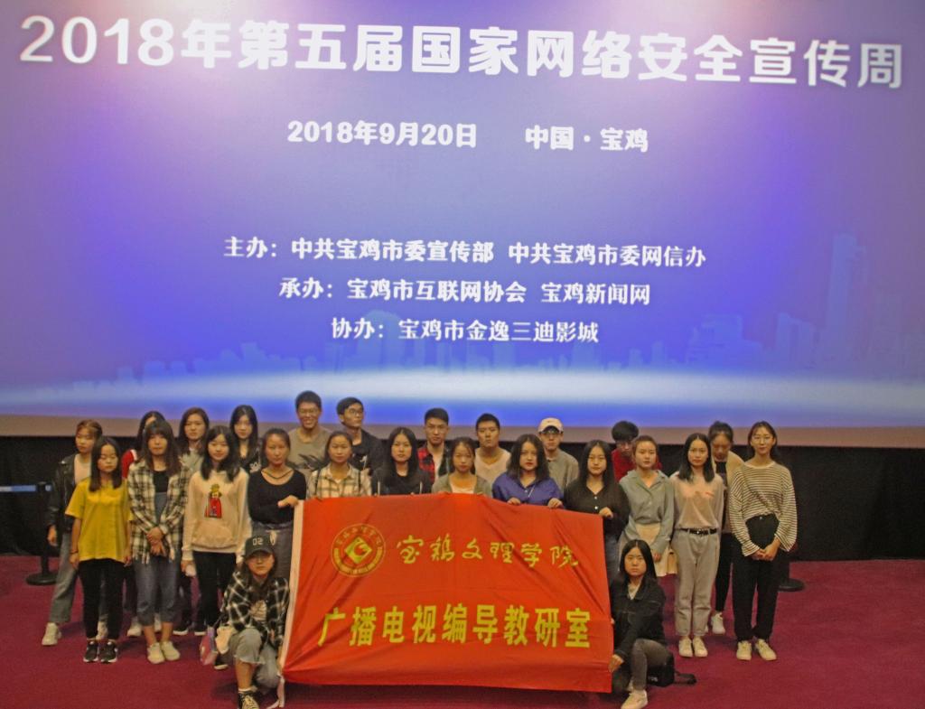 9月20日,宝鸡市网络安全论坛在宝鸡市金逸三迪影城召开,文学与新闻传播学院、数字媒体大学生创新创业团队教师王晓受邀带领30余位学生参加此次论坛。本次网络安全论坛由中共宝鸡市委宣传部、中共宝鸡市委网信办主办,宝鸡新闻网总编辑冯蓓主持,市委宣传部副部长、市委网信办主任李宝平致辞。