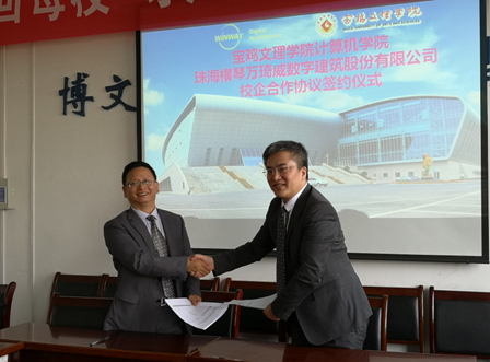 10月8日,计算机学院与珠海横琴万琦威数字建筑股份有限公司在学院会议室举行了校企合作协议签署仪式。计算机学院院长刘鹏辉和珠海横琴万琦威数字建筑股份有限公司董事长朱东海代表双方在协议签字。仪式由计算机学院副院长李亚峰主持,这是计算机学院今年以来在校企合作领域取得的又一项重大成果。