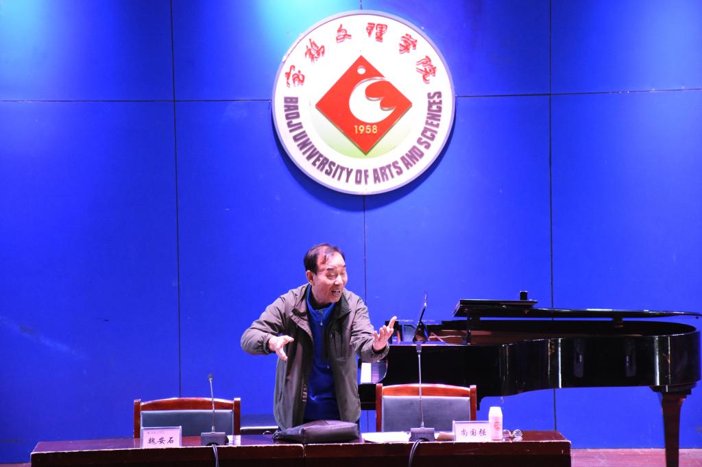 10月29日上午,基础教育名师进校园系列报告活动(四)在新校区音乐厅举办,宝鸡职业技术学院教师尚国强应邀作了题为《歌声与话声的区别——怎样使中小学生唱好歌》的学术报告。报告由音乐学院副院长魏安石主持。