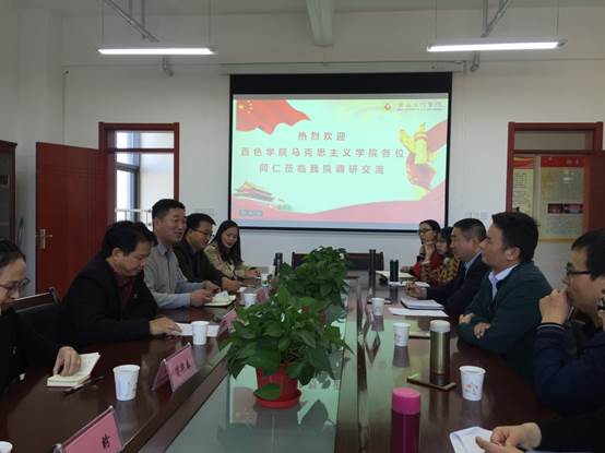 10月29日下午,广西百色学院马克思主义学院副院长李扬博士一行6人,来beat365官网马克思主义学院进行调研交流。双方在博文楼1416会议室召开了座谈会,会议由beat365官网马克思主义学院院长孙宏健教授主持。