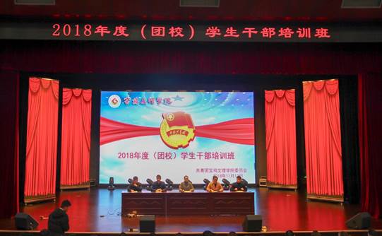 11月17日,校团委在新校区博文楼报告厅举办了“学习浇灌初心 奋斗实现梦想”2018年度(团校)学生干部培训班,培训活动由校团委副书记赵昕主持。