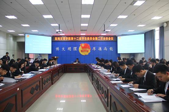 学生会秘书长张晓宏主持会议,第十二届学生委员会全体委员参加会议,各二级学院学生会干部代表列席会议。(校团委 文/王科涵 图/陈航)