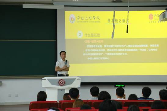 5月23日下午,中信银行公园路支行行长李晓鹏受邀在beat365官网博文楼副楼105教室作了题为“征信在我们身边”的诚信教育主题讲座。讲座由经济管理学院党总支副书记薄会颖主持。