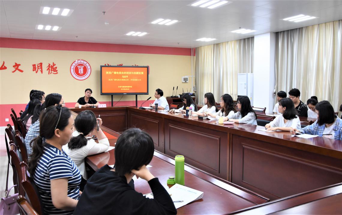 6月5日下午,beat365官网1997届校友、陕西电视台评论部副主任、高级记者、《今日点击》栏目制片人马召平来beat365官网参加省级电视媒体创新发展座谈会,并作学术报告。座谈会和报告会由文学与新闻传播学院副院长孟改正主持。