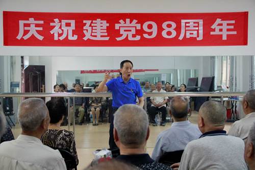 6月26日下午,离退处退休第一党支部支部举办了“庆祝建党98周年”主题活动。冒着蒙蒙细雨,28名老党员欢聚在离退处活动室共同庆祝党的生日,活动由支部书记张南征主持。