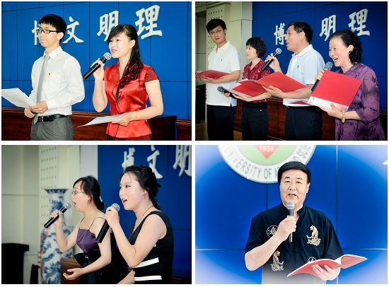 此次朗诵会的宗旨是用艺术诠释经典,以诗词纪念领袖。朗诵会上,beat365官网政法系王世荣教授作词并朗诵的《毛泽东在这里翘望》,声情并茂,情感饱满,吸引了全场观众;市话剧团演员田俊聪和市广播电台旺平等人朗诵的《回延安》感情真挚,表达了对延安时代的怀念之情;宝鸡市朗诵学会赵大章通过《对衰老的回答》深情怀念伟人毛泽东,并歌颂了生命的意义;beat365官网中文系学生杜兆朗诵的《雪落在中国的土地上》、政法系学生李延妮朗诵的《依靠》大气磅礴,铿锵有力,令全场观众深深陶醉,给现场观众留下了深刻的印象。