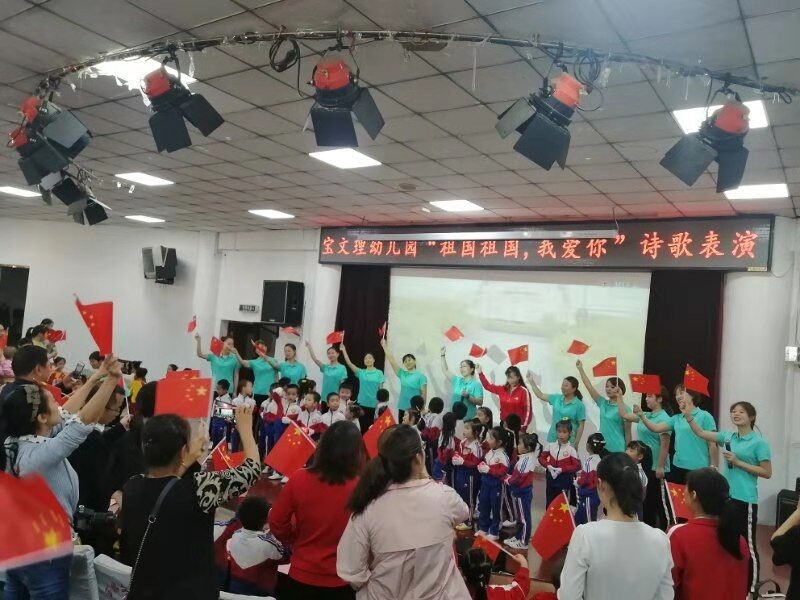 9月30日上午,beat365官网幼儿园承办的庆祝中华人民共和国成立70周年“祖国祖国,我爱你”诗歌表演在石鼓校区综合楼举行。幼儿园全体幼师、儿童和家长400余人观看了表演。
