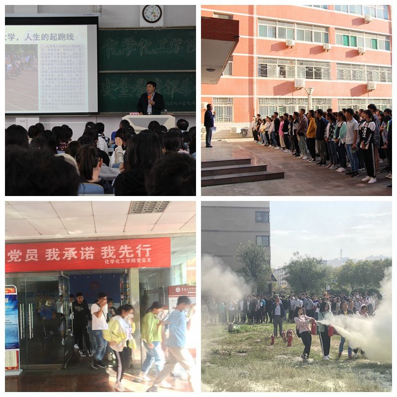 ——警钟长鸣,构筑校园安全。9月23日,学院邀请保卫处处长樊林森为新生作安全教育讲座。樊林森结合学院专业特点着重强调了化学实验安全,并提醒同学们在日常学习和生活中要提高安全意识,时刻将安全放在首位。讲座结束后,保卫处组织全体师生在科技楼进行了一场消防安全演练活动。整个过程前后衔接连贯,成功快速的疏散了全体师生,及时扑灭了大火,取得了预期效果。随后,保卫处工作人员周文斌为全体师生进行了灭火器等消防器材的使用方法、注意事项及火灾常见的扑救方法的培训,每位学生亲自体验了手持灭火器现场灭火的全过程。