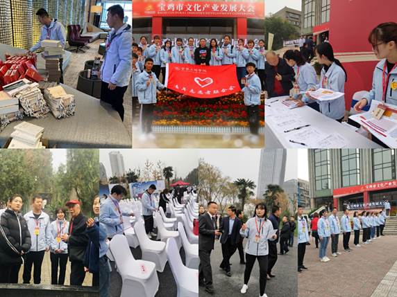 本次大会以“弘扬传承优秀文化,推动文化产业高质量发展”为主题,先后举行了宝鸡市文化艺术中心建成开放仪式、宝鸡文化产业发展大会、东盟使节及外媒“一带一路”宝鸡行等22场活动,多角度、全方位展示了“文化宝鸡”“魅力宝鸡”新形象,为今后宝鸡文化产业高质量发展扩大了影响,拓宽了渠道,奠定了基础。大会期间,82名文理“小青宝”牢记“奉献、友爱、互助、进步”的志愿者精神,积极投入到接待、会务、招商、讲解、礼仪、宣传等各个服务岗位一线,以良好的精神状态、扎实的专业素养和热情细致的服务圆满地完成了此次志愿服务工作,累计服务时长达3500小时,保障了大会的顺利举行,向海内外宾朋展现了宝文理学子昂扬向上的精神面貌,彰显了宝鸡文化与城市形象,扩大了学校办学声誉和社会影响,赢得了大会组委会和参会嘉宾的充分肯定和认可。