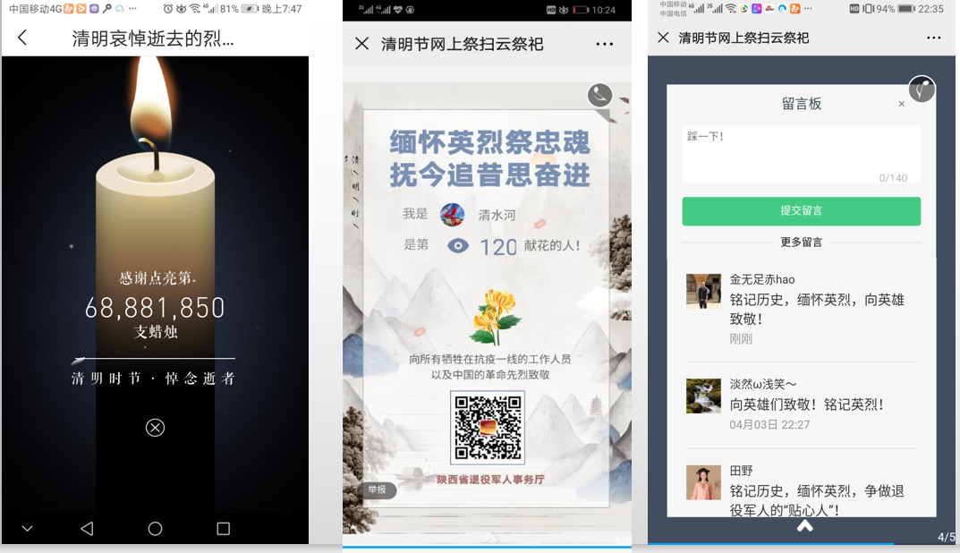 在清明节前后,全体党员通过多种形式开展“致敬英烈、文明祭扫”主题党日活动,缅怀英烈,致敬英雄。党员栾宏同志书写“万众一心 众志成城”表达对抗疫英雄的致敬和抗击疫情的决心。全体党员通过陕西省文明办、宝天烈士陵园等举办的网上祭英烈主题活动,以网上献花、发表签名寄语等形式,缅怀革命烈士事迹,学习先烈不畏艰难、甘于奉献的民族精神,表达对疫情期间牺牲烈士和逝世同胞的敬意和哀思。