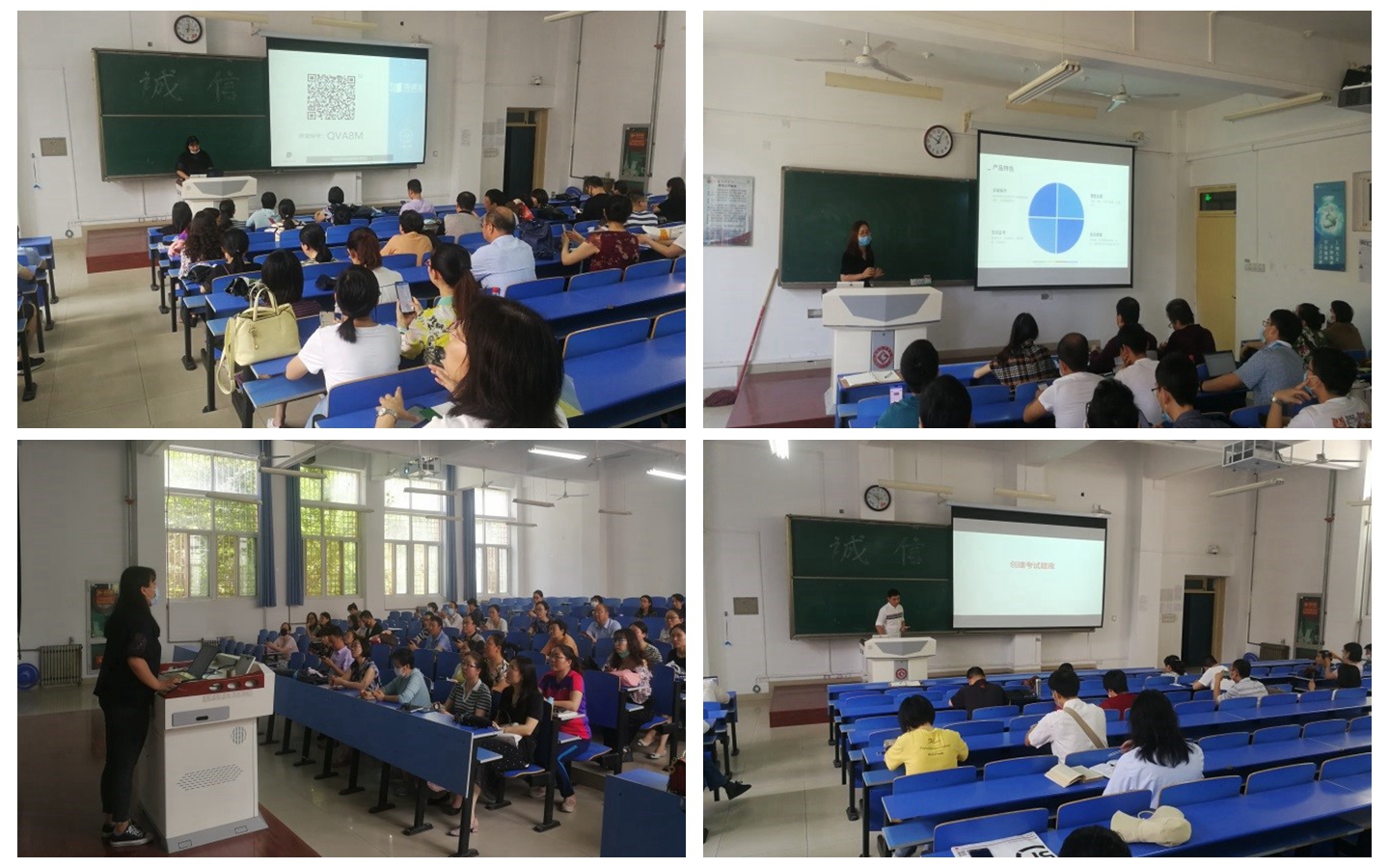 为确保疫情期间的线上考核顺利开展,助力任课教师熟悉掌握线上考试平台的使用与操作,学校邀请了“雨课堂”“智慧树”“超星尔雅”等主要在线教学平台开展了一系列线上线下技术培训活动。目前已经举行现场培训4次,参与培训教师500余人次,后续培训还将继续进行。