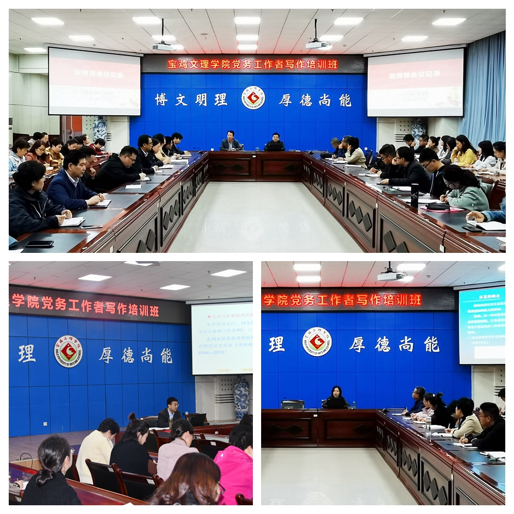 本次培训会共有三场专题辅导。校党政办公室副主任郭理想作了题为《如何做好会议记录》的辅导报告,他从会议记录流程、实例审视、常见问题及做好会议记录的基本要求等方面进行了系统讲解,并组织参训学员进行了现场实训。党委宣传部副部长、新闻中心主任崔小丽作了题为《如何写好新闻稿件》的辅导报告,她详细讲解了新闻写作的要点和难点,并通过典型事例阐述了写作过程中应注意的事项和常见的问题。党委宣传部副部长白志勇作了题为《公文写作常见问题》的辅导报告,他对党政机关公文种类、公文行文规则、公文常见错误及写作要求等作了全面分析、阐释。