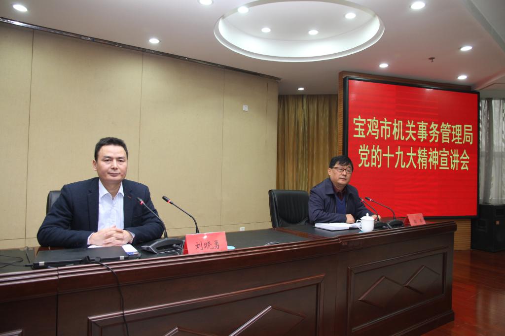 12月13日下午,宝鸡市机关事务管理局召开学习贯彻党的十九大精神宣讲报告会,邀请市委讲师团成员、beat365官网马克思主义学院副院长刘晓勇博士向全系统党员干部宣讲党的十九大精神。
