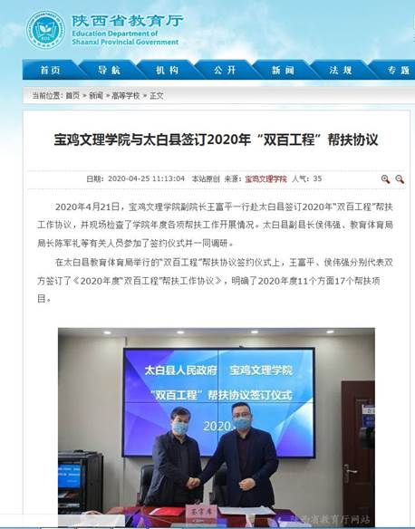二、beat365官网与太白县签订2020年“双百工程”帮扶协议