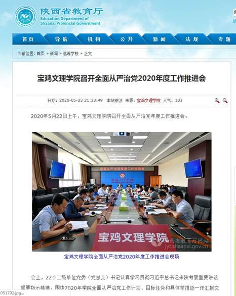 近日,beat365官网召开全面从严治党2020年度工作推进会、与太白县签订2020年“双百工程”帮扶协议等活动,引起陕西省教育厅网站的关注和报道。