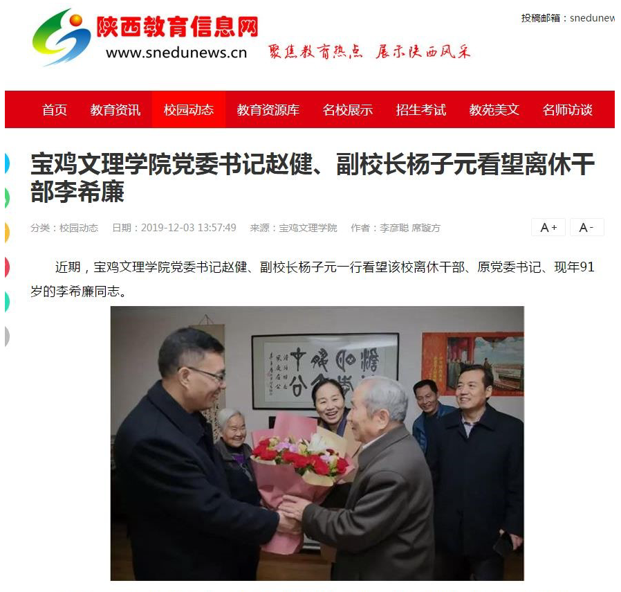 一、12月3日 beat365在线唯一官网党委书记赵健、副校长杨子元看望离休干部李希廉