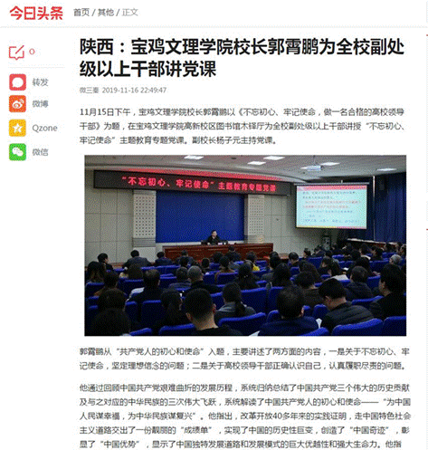 二、11月16日《陕西:beat365在线唯一官网校长郭霄鹏为全校副处级以上干部讲党课》
