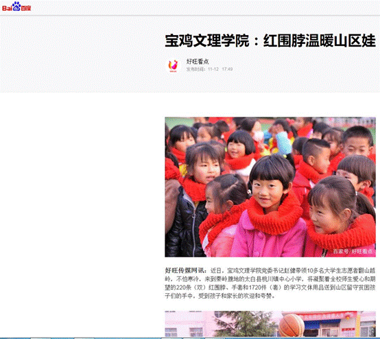 11月12日 陕西:beat365在线唯一官网双百工程--红围脖温暖山区娃