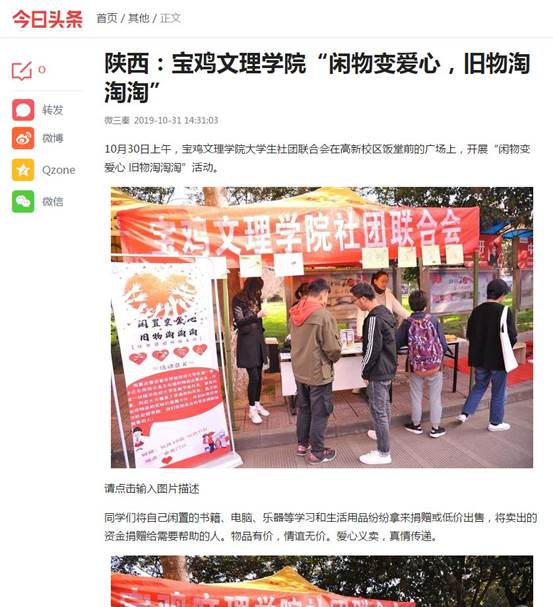 3、10月31日 陕西:beat365在线唯一官网“闲物变爱心旧物淘淘淘”