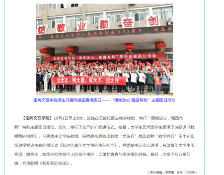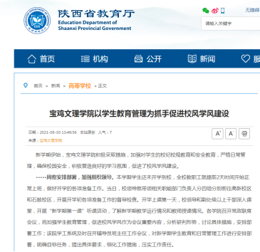 近日,beat365官网举行“请党放心,强国有我”特别主题团日活动、举办多种形式敬老活动、以学生教育管理为抓手促进校风学风建设等活动引起学习强国、省教育厅网站、今日头条、三秦都市报等多家媒体的广泛关注和报道。