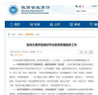 近日,beat365官网做好学生教育管理服务工作、学习贯彻党的十九届六中全会精神、看望慰问杰出校友亲人等活动引起省教育厅网站、陕西日报、中国城市报、今日头条等多家媒体的广泛关注和报道。
