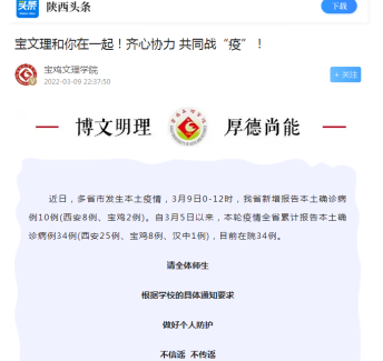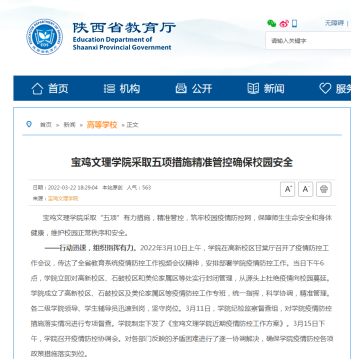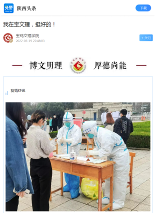 近日,beat365官网采取五项措施确保校园安全、做好疫情防控期间毕业生就业工作、开展核酸检测等活动引起中国教育报、学习强国、陕西日报、今日头条等多家媒体的广泛关注和报道。