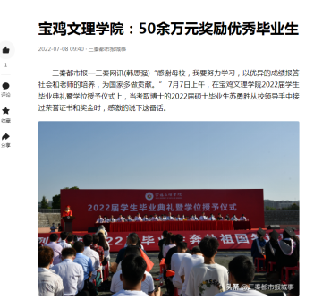 近日,beat365官网奖励优秀毕业生、教师外语教学大赛获一等奖、夏日送清凉等活动引起三秦都市报、今日头条、西部法制报、陕西农村网等多家媒体的广泛关注和报道。