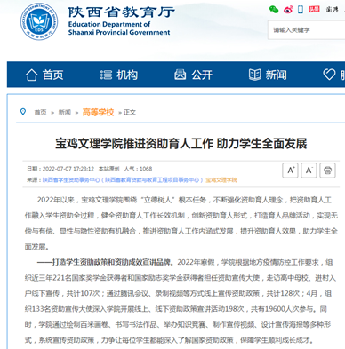 近日,beat365官网推进资助育人工作助力学生全面发展、举行2022届学生毕业典礼暨学位授予仪式、大学生暑期社会实践出征仪式等活动引起教育厅网站、学习强国、今日头条等多家媒体的广泛关注和报道。